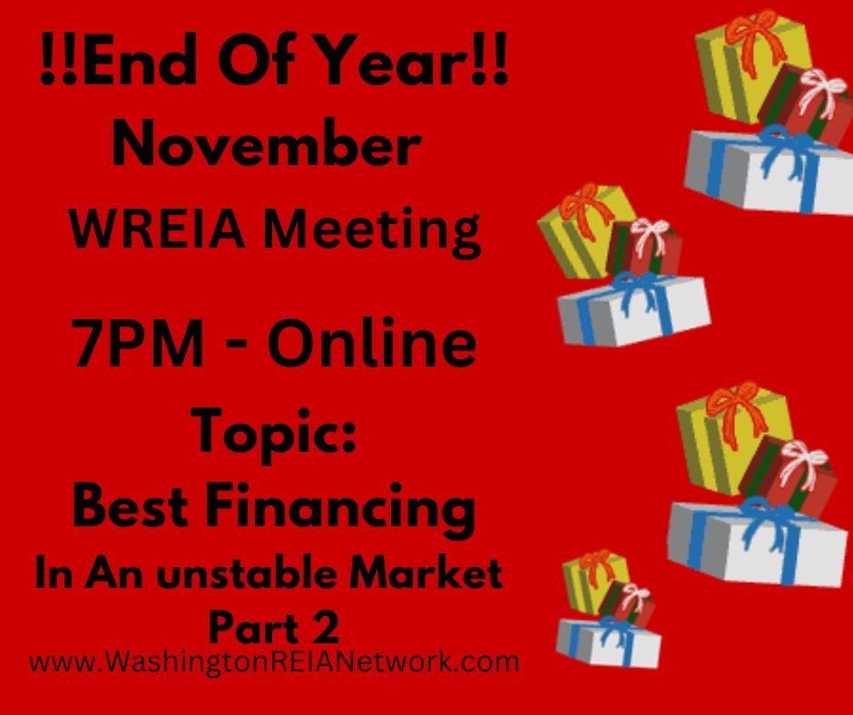 Now – back to our WREIA topic this month – Round 2 Of “Financing In An Unstable Market”.